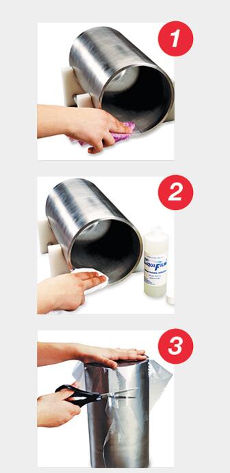 將Liquifilm水溶性粘合劑涂抹到管道內側。涂抹管道表面需貼膜的整個圓周。